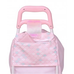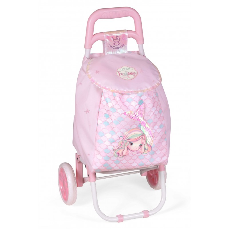 Superbe chariot de course pliant de la collection Ocean Fantasy. C'est parfait pour accompagner les parents au marché, c'est un jouet, mais vous pouvez ajouter des objets de faible poids. Le chariot a tous les détails comme des couleurs douces et des tones roses. L'¡article inclut une poignée en plastique arrondie pour éviter les accidents et une poche arrière zippée et pratique pour garder le plus important.